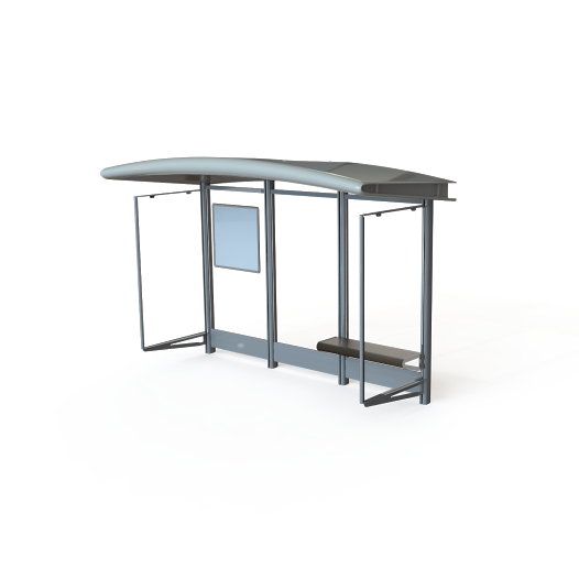 4 poteaux sur platine soudée en aluminium. Profil en forme de goutte d’eau. Accessoires d’assemblage (support caisson publicitaire, vitres arrières et latérales, plinthe…) en aluminium ou acier peint (RAL 7022).Le caisson publicitaire et la vitre latérale se fixent grâce à la glissière prévue à cet effet dans le profilé du poteau. Les vitres arrières et les plinthes sont maintenues par les accessoires fixés sur le flanc des&