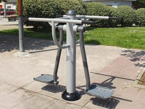 Destiné à une grande variété d’âges. Les mécanismes de ses éléments aident à minimiser l’effort physique, tout en optimisant le rendement. Les éléments formant le circuit aérobic sont fabriqués avec une colonne en acier d’un diamètre de 140 mm et d’une épaisseur de 3,5 mm comme élément de support. Le reste du matériel utilisé dans les composants présente des caractéristiques similaires en termes de robustesse et d’épaisseur. Le revêtement des pièces est réalisé avec de la peinture en poudre formulée avec des résines époxy et de polyester, sans TGIC. Elle s’applique au cours de la chaîne automatisée de peinture comprenant deux étapes de nettoyage, le séchage, l’application de la poudre et le thermodurcissement à 210º, assurant une résistance à la corrosion supérieure à 240 heures lors des tests en chambre de brouillard salin. Au cours de ce procédé, il est réalisé une double couche de peinture comprenant une première imprégnation de résine époxy riche en zinc et une couche externe de polyester de haute qualité. Le procédé permet d’obtenir une couche de peinture uniforme de protection, jamais inférieure à une moyenne comprise entre 100 et 130 microns. Le choix rigoureux des matières premières et la qualité du processus de production nous permet de donner un garantie d’un an. Des pièces de rechange sont disponibles et le service après-vente est garanti pour toute la durée de vie des éléments.