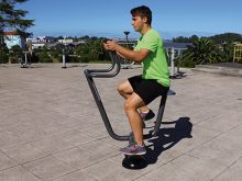Destiné à une grande variété d’âges. Les mécanismes de ses éléments aident à minimiser l’effort physique, tout en optimisant le rendement. Les éléments formant le circuit aérobic sont fabriqués avec une colonne en acier d’un diamètre de 140 mm et d’une épaisseur de 3,5 mm comme élément de support. Le reste du matériel utilisé dans les composants présente des caractéristiques similaires en termes de robustesse et d’épaisseur. Le revêtement des pièces est réalisé avec de la peinture en poudre formulée avec des résines époxy et de polyester, sans TGIC. Elle s’applique au cours de la chaîne automatisée de peinture comprenant deux étapes de nettoyage, le séchage, l’application de la poudre et le thermodurcissement à 210º, assurant une résistance à la corrosion supérieure à 240 heures lors des tests en chambre de brouillard salin. Au cours de ce procédé, il est réalisé une double couche de peinture comprenant une première imprégnation de résine époxy riche en zinc et une couche externe de polyester de haute qualité. Le procédé permet d’obtenir une couche de peinture uniforme de protection, jamais inférieure à une moyenne comprise entre 100 et 130 microns. Le choix rigoureux des matières premières et la qualité du processus de production nous permet de donner un garantie d’un an. Des pièces de rechange sont disponibles et le service après-vente est garanti pour toute la durée de vie des éléments.