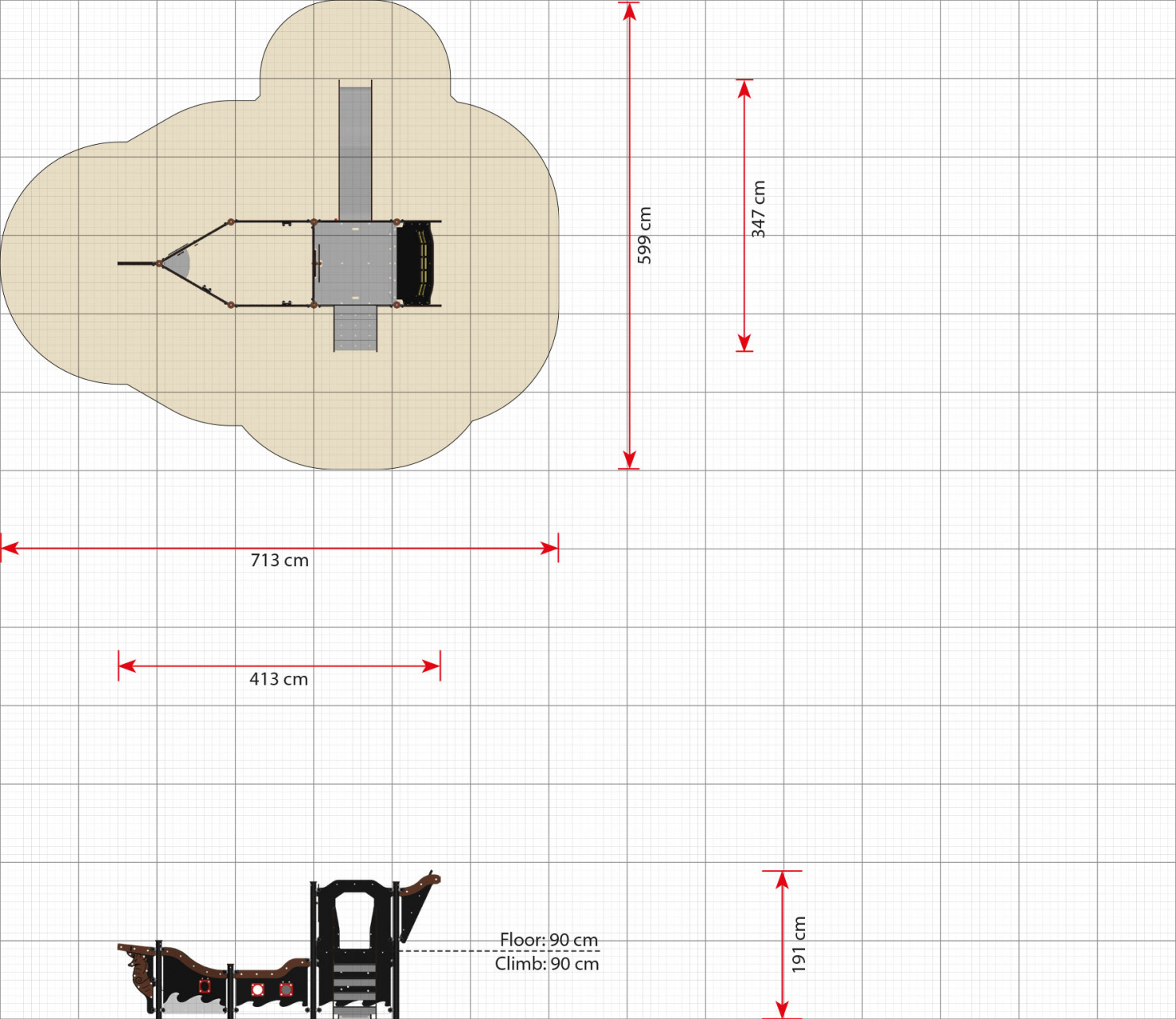 - Dimensions (cm) :413 x 347 x 191 cm