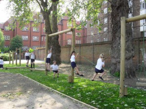 Cordage fabriqué à partir de câble résistant au vandalisme et multi-filaments polypropylène hydrauliquement pressé avec des boulons en acier inox (A2).