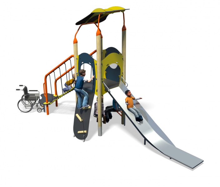 - Accessibilité : La structure est équipée d’un accès spécialement conçu pour les enfants à mobilité réduite, permettant à tous les enfants de profiter pleinement des installations.