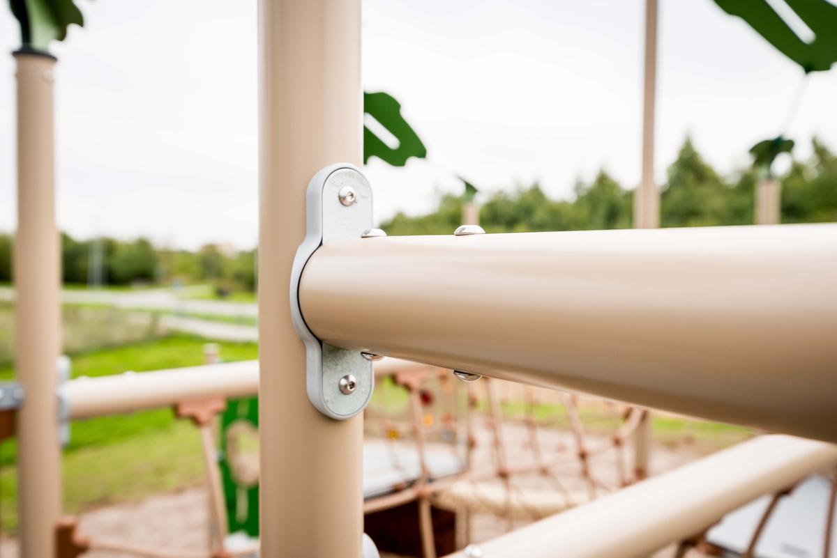 - Structure en Acier Galvanisé : La structure principale est en acier galvanisé par trempage, assurant une résistance optimale à la corrosion et une longévité accrue. Cette robustesse permet à la structure de supporter les conditions climatiques les plus rigoureuses, tout en offrant une sécurité maximale aux enfants.