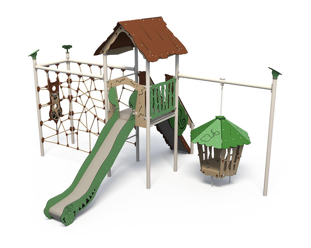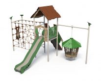 - Maisonnette Suspendue : La structure Lumka comprend une maisonnette suspendue, offrant un espace de jeu unique et stimulant pour les enfants. Cet élément favorise l’imagination et le jeu de rôle, permettant aux enfants de créer leurs propres aventures.