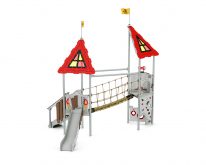 - Tours et passerelle : Les deux tours offrent des points de vue élevés et des espaces de jeu variés, tandis que la passerelle en corde ajoute une dimension d’aventure et de défi.