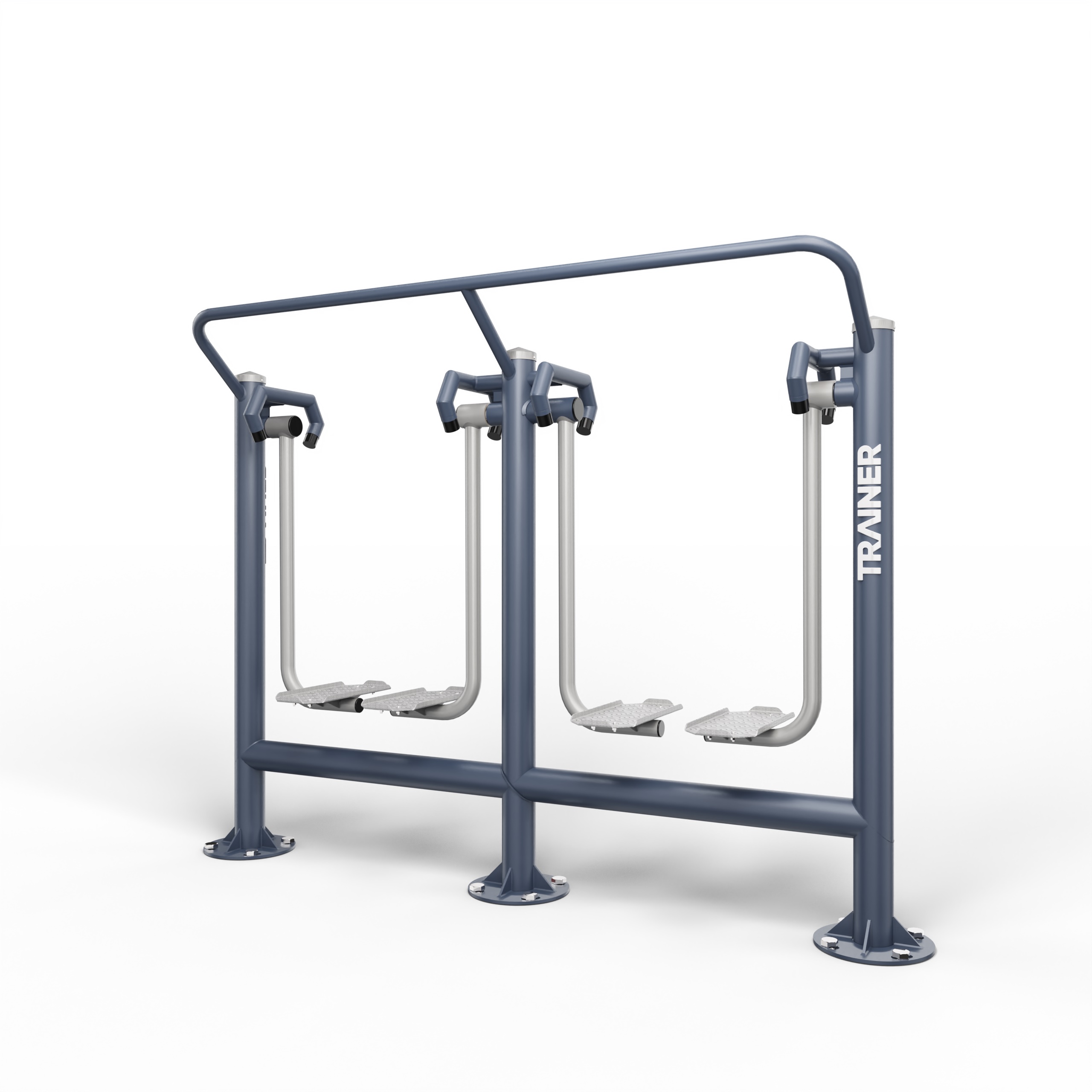 Les structures sont fabriquées en acier galvanisé et revêtues d’une double couche de peinture en poudre. Les sièges sont réalisés en panneaux de PEHD et les marches en aluminium.