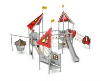 Découvrez la structure de jeu Merlin 3-14 ans, une solution idéale pour les espaces publics tels que les mairies, collectivités, campings et écoles. Conçue pour offrir des heures de divertissement aux enfants de 3 à 14 ans, cette structure de jeu fait partie de notre gamme « Château Fort », alliant robustesse, sécurité et plaisir.