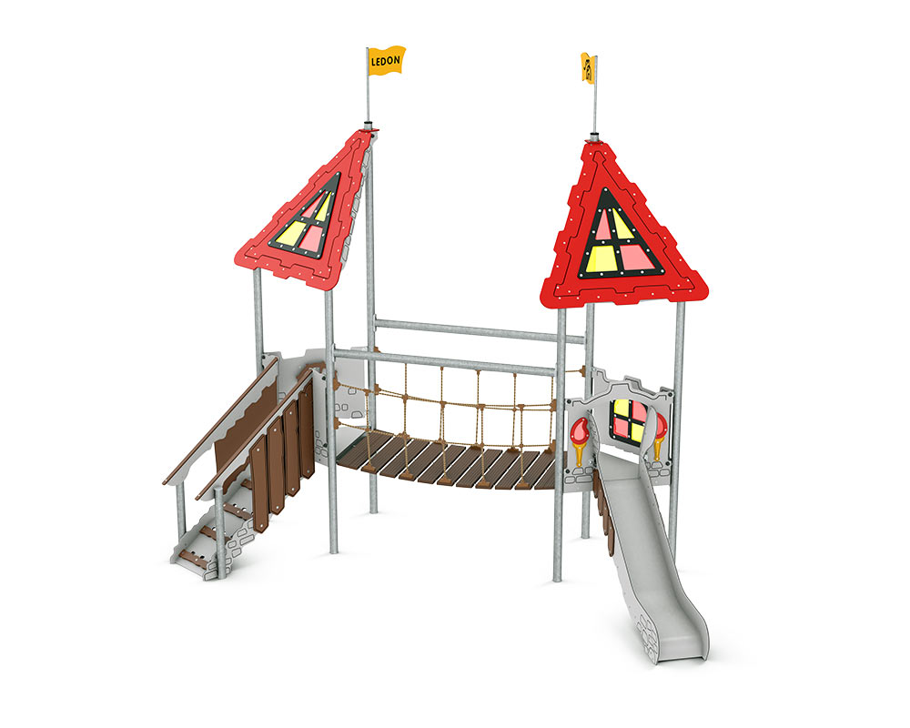 - Design Attrayant : Inspirée des châteaux forts, la structure Morgan Le Fay est équipée de deux tours majestueuses reliées par une passerelle. Ce design captivant stimule l’imagination des enfants et les invite à des aventures sans fin.