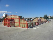 - Les grilles sont remplies par des lames de bois traité autoclave classe IV disposées verticalement.