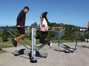 Destiné à une grande variété d’âges. Les mécanismes de ses éléments aident à minimiser l’effort physique, tout en optimisant le rendement. Les éléments formant le circuit aérobic sont fabriqués avec une colonne en acier d’un diamètre de 140 mm et d’une épaisseur de 3,5 mm comme élément de support. Le reste du matériel utilisé dans les composants présente des caractéristiques similaires en termes de robustesse et d’épaisseur. Le revêtement des pièces est réalisé avec de la peinture en poudre formulée avec des résines époxy et de polyester, sans TGIC. Elle s’applique au cours de la chaîne automatisée de peinture comprenant deux étapes de nettoyage, le séchage, l’application de la poudre et le thermodurcissement à 210º, assurant une résistance à la corrosion supérieure à 240 heures lors des tests en chambre de brouillard salin. Au cours de ce procédé, il est réalisé une double couche de peinture comprenant une première imprégnation de résine époxy riche en zinc et une couche externe de polyester de haute qualité. Le procédé permet d’obtenir une couche de peinture uniforme de protection, jamais inférieure à une moyenne comprise entre 100 et 130 microns. Le choix rigoureux des matières premières et la qualité du processus de production nous permet de donner un garantie d’un an. Des pièces de rechange sont disponibles et le service après-vente est garanti pour toute la durée de vie des éléments.
