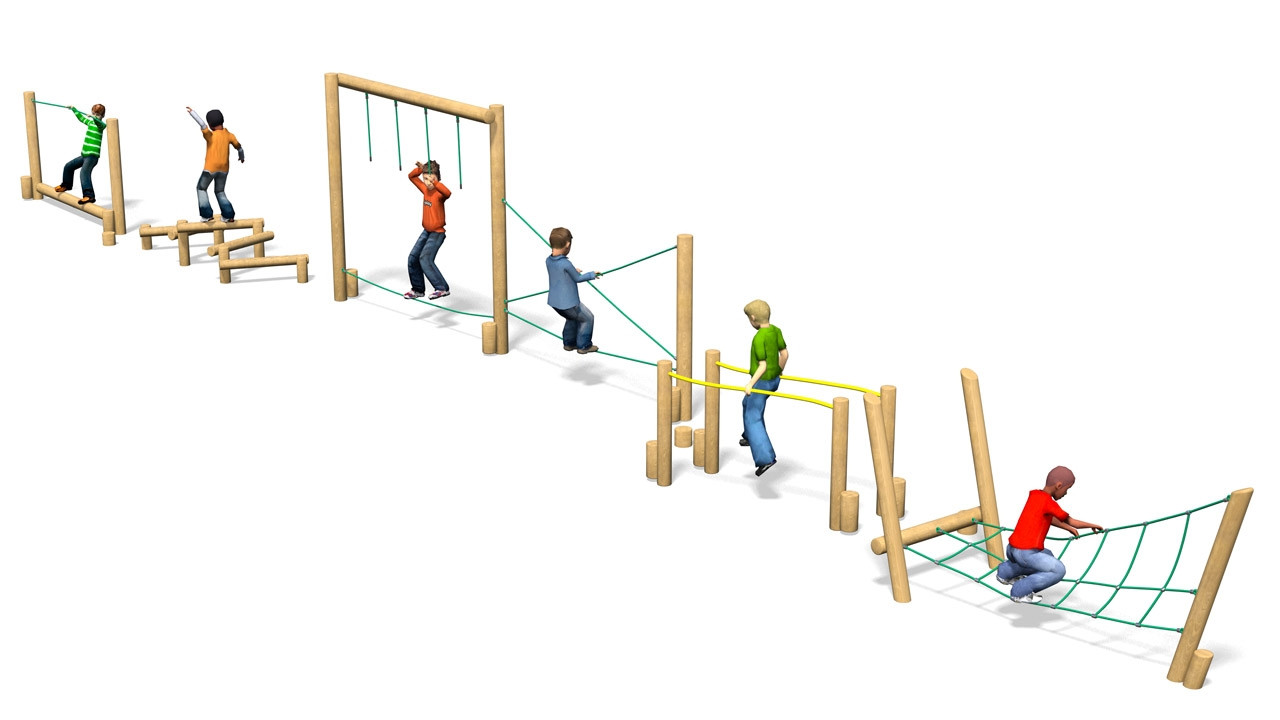 - Parcours aventure enfants composé de 7 agrés