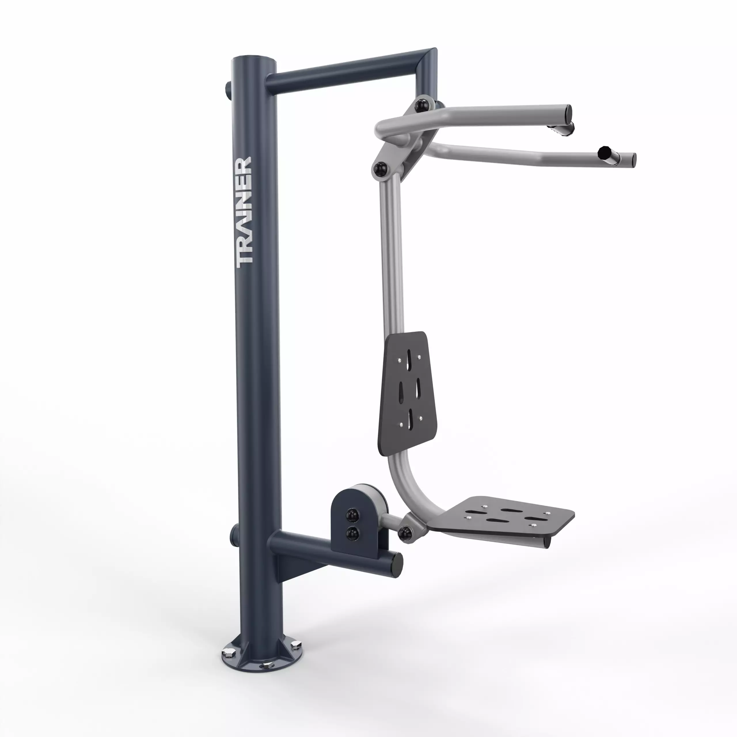 Les structures sont fabriquées en acier galvanisé et revêtues d’une double couche de peinture en poudre. Les sièges sont réalisés en panneaux de PEHD et les marches en aluminium.