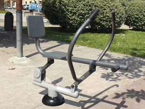 Destiné à une grande variété d’âges. Les mécanismes de ses éléments aident à minimiser l’effort physique, tout en optimisant le rendement. Les éléments formant le circuit aérobic sont fabriqués avec une colonne en acier d’un diamètre de 140 mm et d’une épaisseur de 3,5 mm comme élément de support. Le reste du matériel utilisé dans les composants présente des caractéristiques similaires en termes de robustesse et d’épaisseur. Le revêtement des pièces est réalisé avec de la peinture en poudre formulée avec des résines époxy et de polyester, sans TGIC. Elle s’applique au cours de la chaîne automatisée de peinture comprenant deux étapes de nettoyage, le séchage, l’application de la poudre et le thermodurcissement à 210º, assurant une résistance à la corrosion supérieure à 240 heures lors des tests en chambre de brouillard salin. Au cours de ce procédé, il est réalisé une double couche de peinture comprenant une première imprégnation de résine époxy riche en zinc et une couche externe de polyester de haute qualité. Le procédé permet d’obtenir une couche de peinture uniforme de protection, jamais inférieure à une moyenne comprise entre 100 et 130 microns. Le choix rigoureux des matières premières et la qualité du processus de production nous permet de donner un garantie d’un an. Des pièces de rechange sont disponibles et le service après-vente est garanti pour toute la durée de vie des éléments.