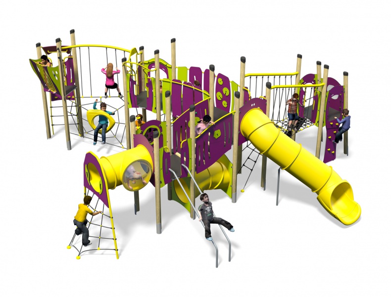 - Équipements variés : La structure est équipée de nombreux filets en corde, de barres parallèles et d’un toboggan tubulaire, offrant une multitude d’activités pour les enfants. Ces éléments permettent de développer leur agilité, leur force et leur coordination tout en s’amusant.