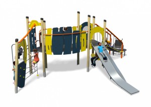 - Accessibilité pour tous : La structure est équipée d’un accès spécialement conçu pour les enfants à mobilité réduite, permettant à tous les enfants de profiter des joies du jeu en plein air.