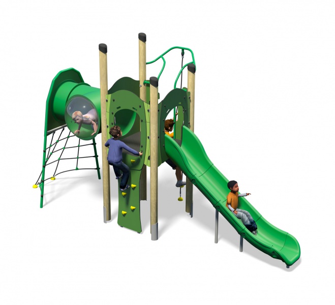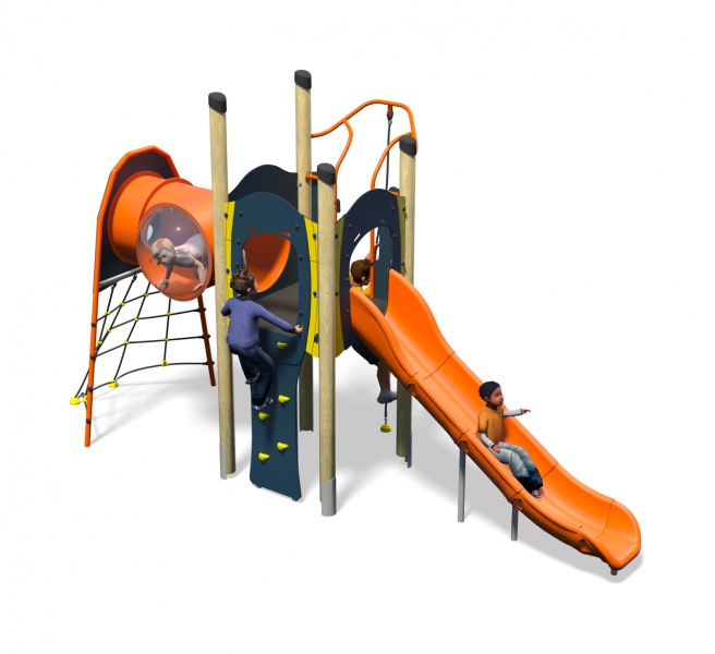 - Équipements variés : Cette aire de jeu est équipée d’un toboggan, d’une perche de feu, d’un filet d’escalade et d’un tunnel avec hublot. Ces équipements diversifiés stimulent l’imagination des enfants et favorisent leur développement physique et social.
