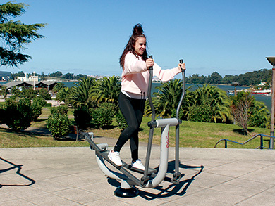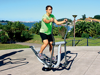 Destiné à une grande variété d’âges. Les mécanismes de ses éléments aident à minimiser l’effort physique, tout en optimisant le rendement. Les éléments formant le circuit aérobic sont fabriqués avec une colonne en acier d’un diamètre de 140 mm et d’une épaisseur de 3,5 mm comme élément de support. Le reste du matériel utilisé dans les composants présente des caractéristiques similaires en termes de robustesse et d’épaisseur. Le revêtement des pièces est réalisé avec de la peinture en poudre formulée avec des résines époxy et de polyester, sans TGIC. Elle s’applique au cours de la chaîne automatisée de peinture comprenant deux étapes de nettoyage, le séchage, l’application de la poudre et le thermodurcissement à 210º, assurant une résistance à la corrosion supérieure à 240 heures lors des tests en chambre de brouillard salin. Au cours de ce procédé, il est réalisé une double couche de peinture comprenant une première imprégnation de résine époxy riche en zinc et une couche externe de polyester de haute qualité. Le procédé permet d’obtenir une couche de peinture uniforme de protection, jamais inférieure à une moyenne comprise entre 100 et 130 microns. Le choix rigoureux des matières premières et la qualité du processus de production nous permet de donner un garantie d’un an. Des pièces de rechange sont disponibles et le service après-vente est garanti pour toute la durée de vie des éléments.