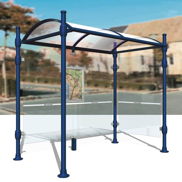 • Structure en poteaux ronds, tube aluminium Ø 76 mm sur platines, colliers et embases en fonte d’aluminium