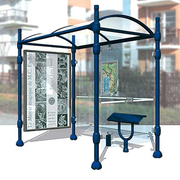 • Structure en poteaux ronds, tube aluminium Ø 76 mm sur platines, colliers et embases en fonte d’aluminium