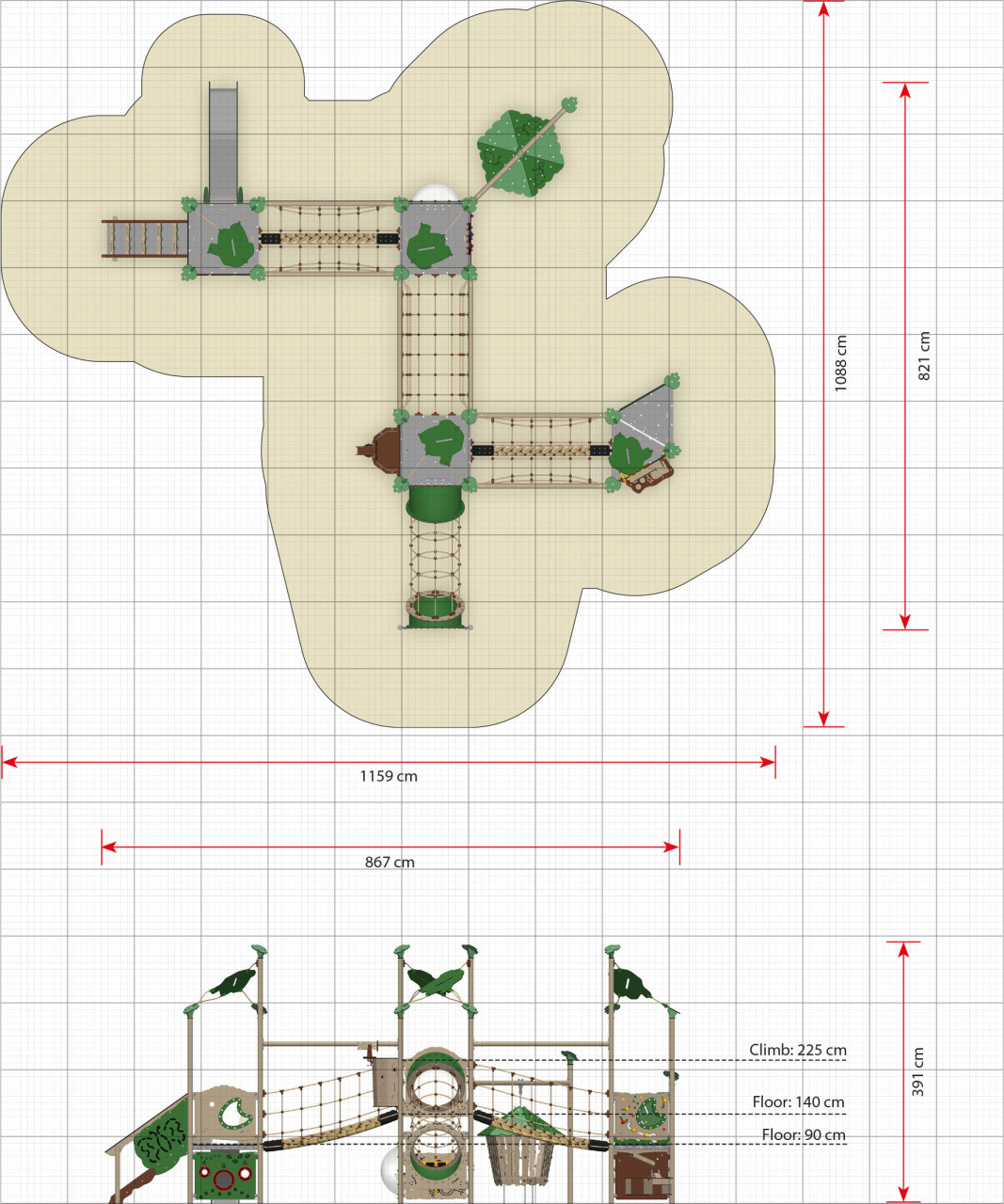 - Surface nécessaire (cm) : 1159 x 1088 cm