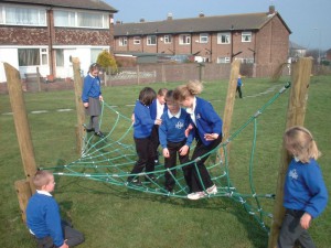Cordage fabriqué à partir de câble résistant au vandalisme et multi-filaments polypropylène hydrauliquement pressé avec des boulons en acier inox (A2).